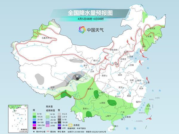 中央气象台预计,今天,新疆沿天山一带和南疆西部山区、内蒙古东北部、西藏东部、青海东南部、川西高原北部等地部分地区有小到中雪或雨夹雪,其中,西藏东北部、川西高原北部等地部分地区有大雪。吉林东部、辽东半岛、山东半岛、山西中北部、西藏东南部、甘肃南部、陕西南部、西南地区东部、江南西部、云南南部、台湾岛等地部分地区有小到中雨,其中,西藏东南部部分地区有大雨。