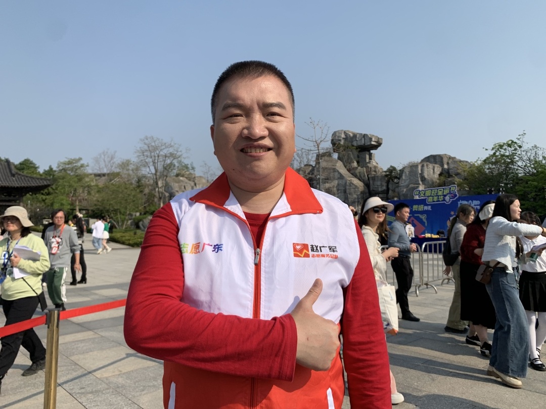 全国道德模范、“全国最美志愿者”赵广军:我们将发动更多志愿者,宣传文明之风。我们将通过志愿者队伍,为赛事和社会提供服务和帮助,例如我们会引导大家文明出行,在观赛过程中文明观赛,除此以外,我们还将发挥志愿者力量,将志愿服务延伸至赛场外,例如为全国和世界游客提供指引,介绍我们广州的文旅特色和文化,宣传广州文明风尚。我们也会提供热线服务,如果游客在观赛的同时,遇到一些难题,例如想更多了解广州美食或者旅游景点,都可以拨打我们的热线,让我们志愿者提供帮助。