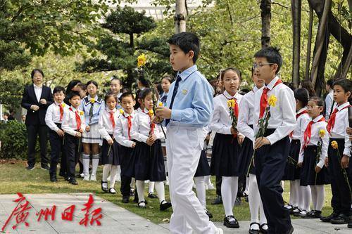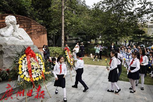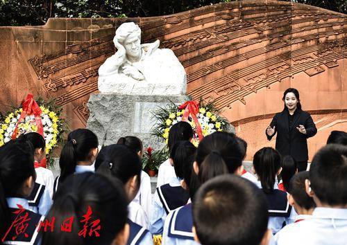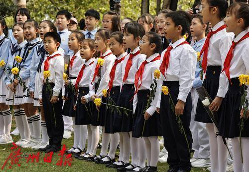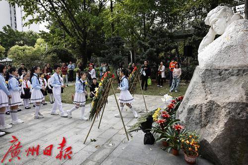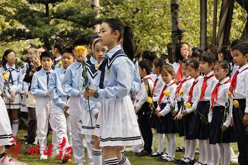 广州市合唱协会在冼星海雕像前举行《冼星海纪念歌》少年儿童缅怀先烈活动。