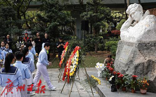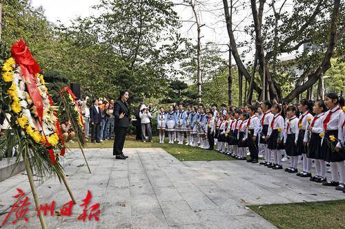 4月4日上午,广州市合唱协会在星海音乐学院南门口冼星海雕像前举行《冼星海纪念歌》少年儿童缅怀先烈活动。
