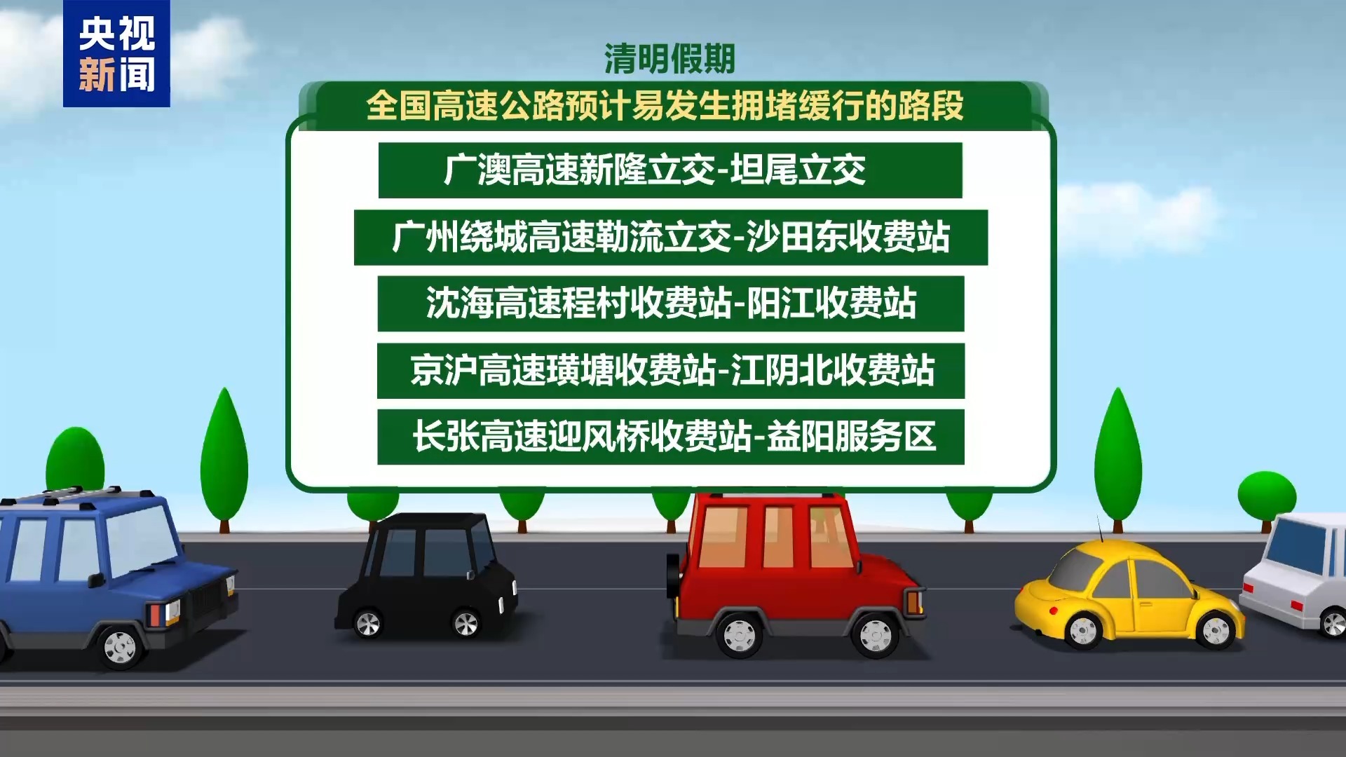 清明假期,全国高速公路预计易发生拥堵缓行的路段分别为: