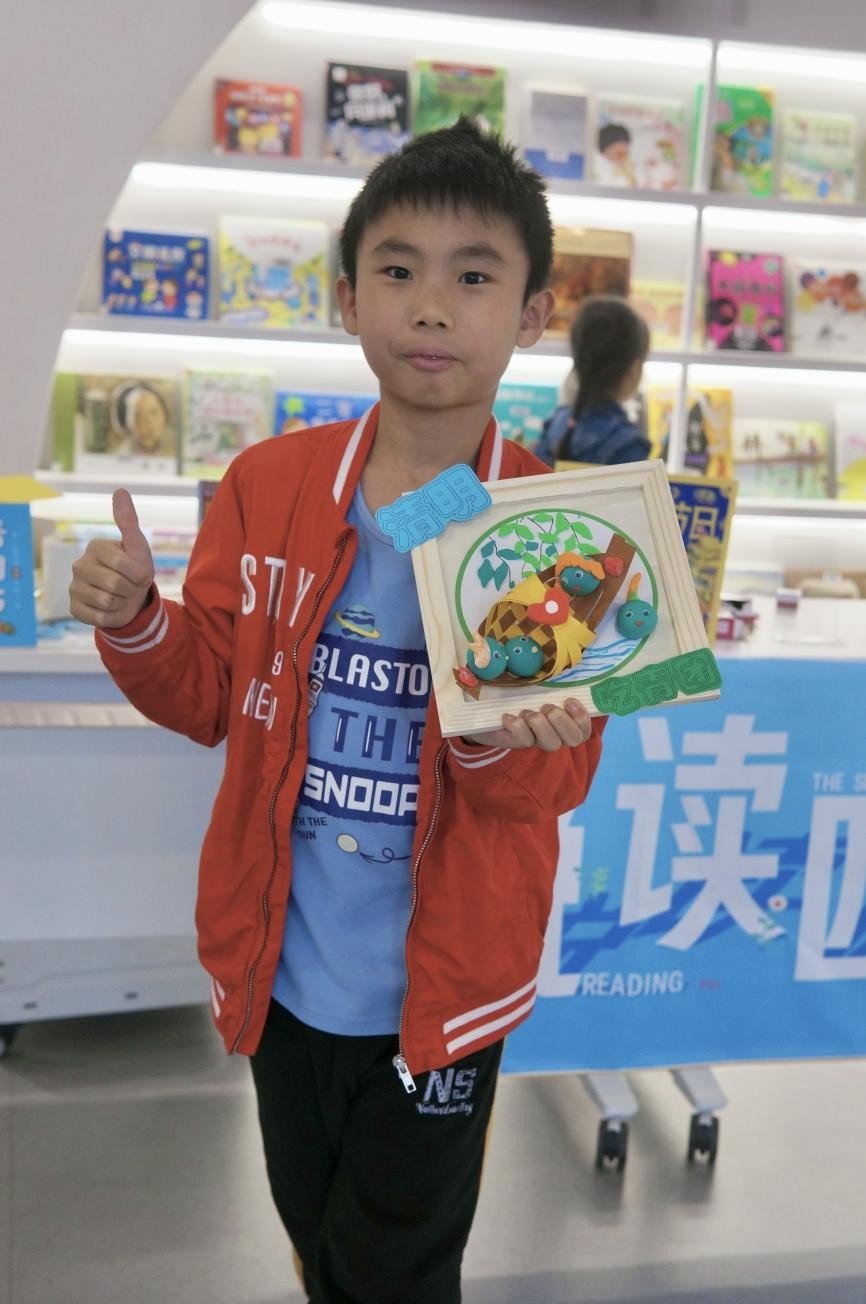 天宫图书馆里,二十几个小脑袋专注地看着燕子姐姐的黏土青团手工示范。孩子们小心翼翼地将草绿色的黏土放在掌心来回揉搓。刚开始,孩子们包“面皮”的手法不是很纯熟,不是这边破了,就是那边漏了,青团变得皱巴巴的。但孩子们毫不气馁,重新揉搓黏土,终于包好了一个个圆滚滚的青团。孩子们还别出心裁,有的给青团贴上了眼睛,还有的给青团戴上了小花……