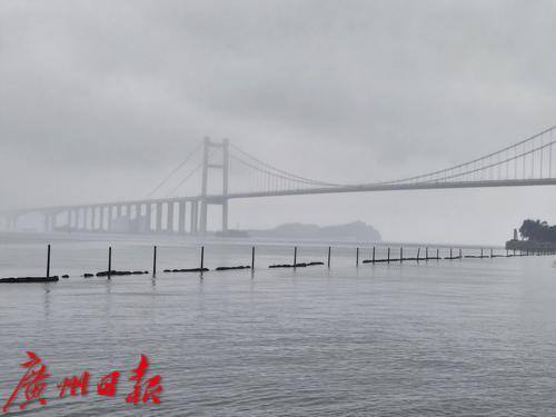 4月5日,清明节假期的第二天,广州下起了小雨,南沙珠江口上烟雨蒙蒙,江上的船只和虎门大桥都笼罩在雨雾中。
