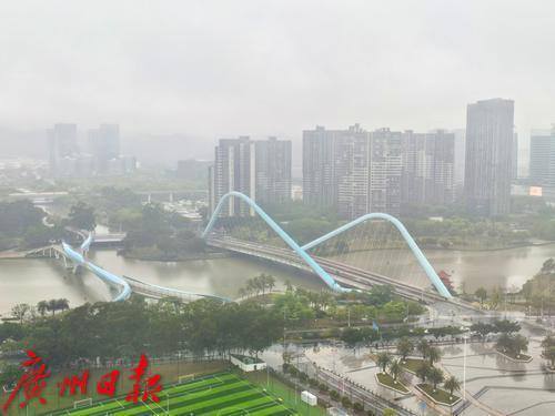 4月5日早上,烟雨中的南沙蕉门河景观。