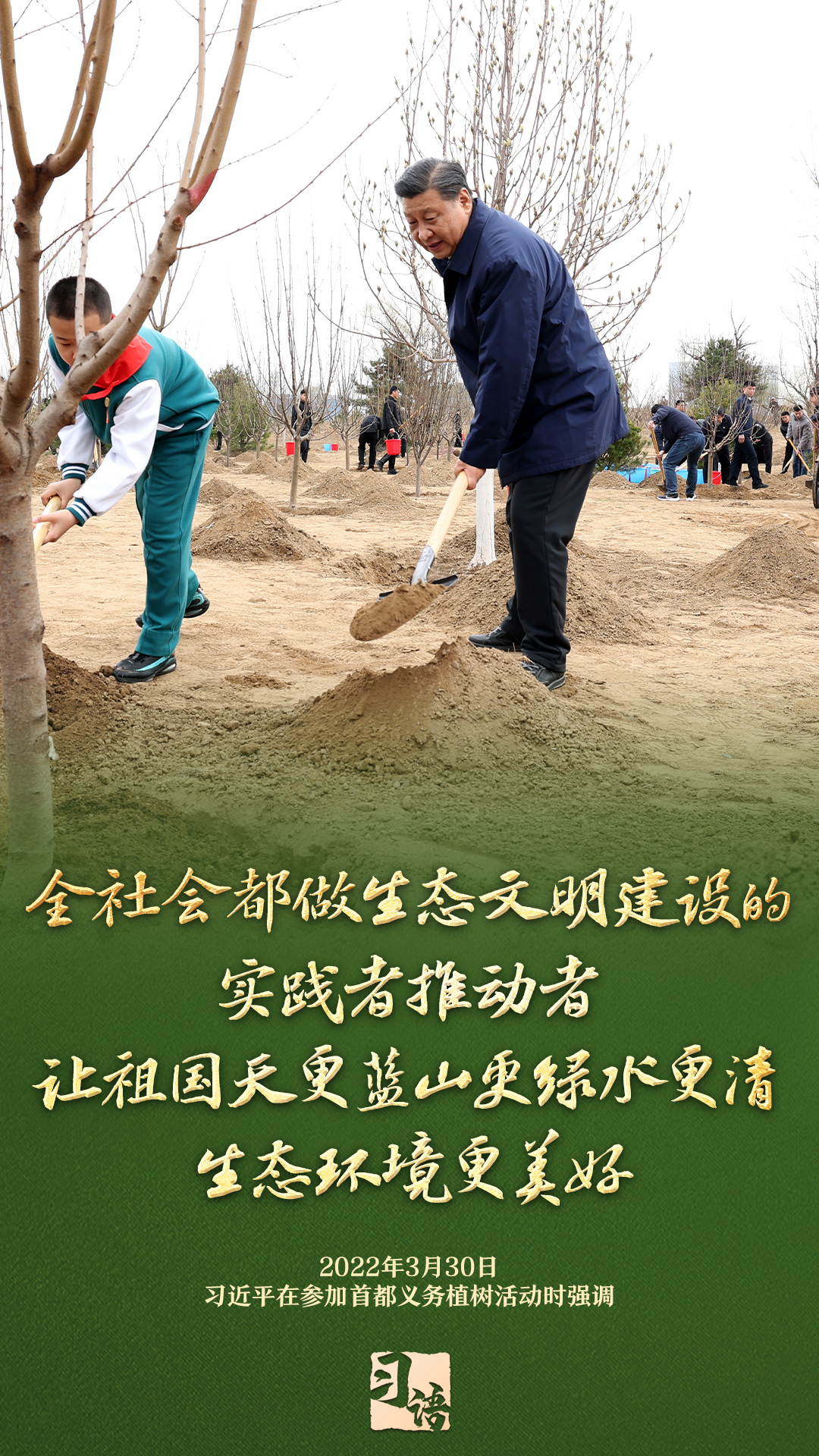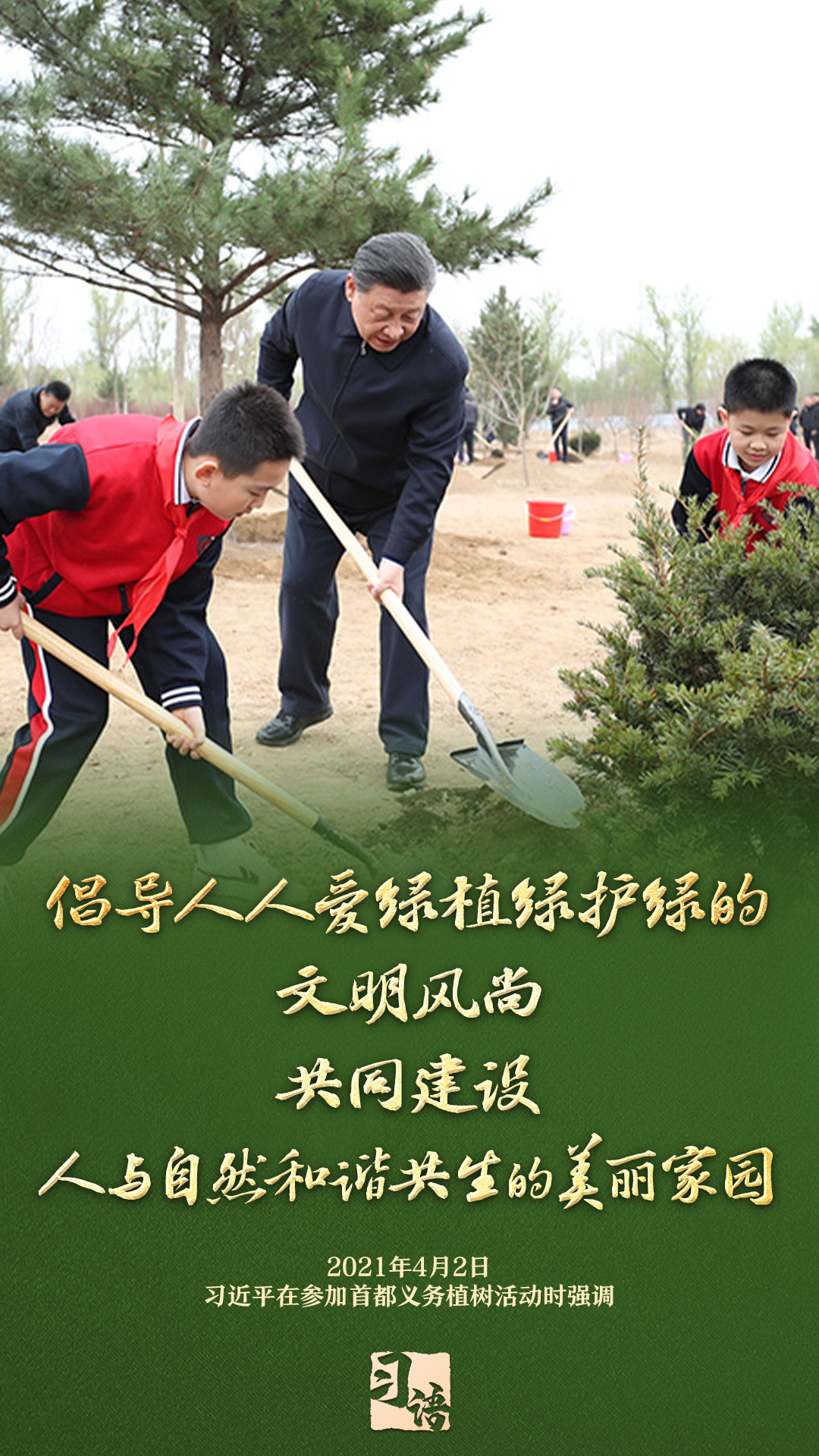 “植树造林是一件很有意义的事情,是一项功在当代、利在千秋的崇高事业,要一以贯之、持续做下去。”自2013年以来的13个春天里,无论晴雨,习近平总书记都会拿起铁锹,与干部群众一起参加首都义务植树活动。铲土造坑、培土围堰、提水浇灌,总书记身体力行种下绿色的希望,对扩绿兴绿护绿、建设美丽中国提出明确要求。一起学习。