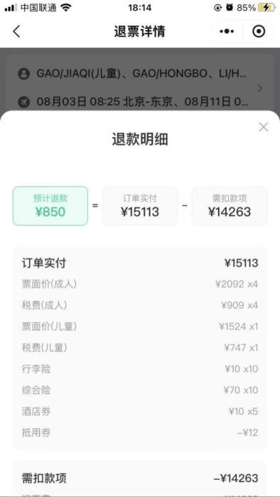 3月26日,因情况有变需改签机票日期,高先生根据平台“先退票再改签”的提示,选择了“退票”选项,结果被扣除14263元,扣款比例高达票价总额的94%。