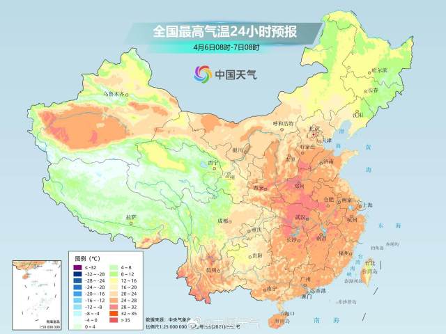 今天(4月6日)起,最高气温25℃以上的区域将快速扩大,覆盖华北中南部到华南等地,多地最高气温将较常年同期偏高10℃左右,不少地方将达到30℃以上,提前感受初夏气息,华北到江南多地,最高气温将堪比常年5、6月份的水平。