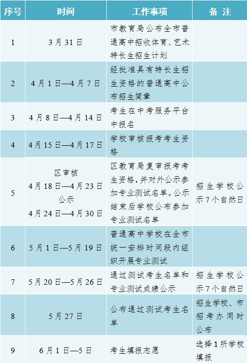 五是学生选择一所学校的一个项目作为志愿填报不变,报考体育艺术特长生基本条件不变,招生工作流程不变。