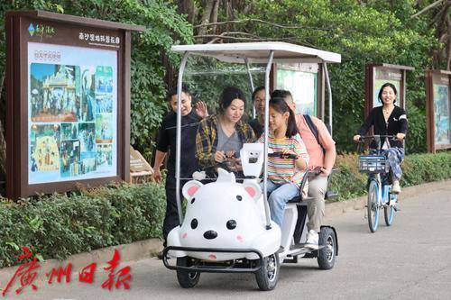 萌趣自驾观光车成为南沙湿地的一道独特风景线。