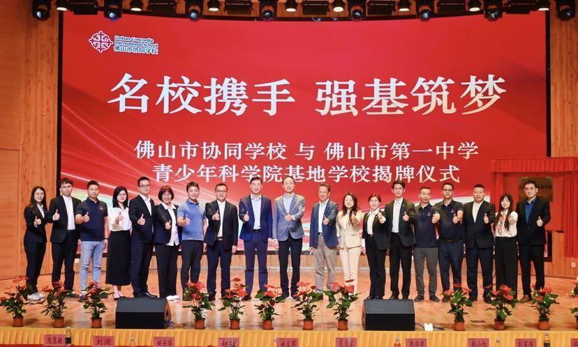 4月8日,佛山市协同学校与佛山市第一中学青少年科学院基地学校揭牌仪式在佛山市协同学校举行。作为佛山一中青少年科学院基地学校,佛山市协同学校将深度对接佛山一中的优质资源,通过课程构建、教师培养等探索拔尖创新人才培养模式。