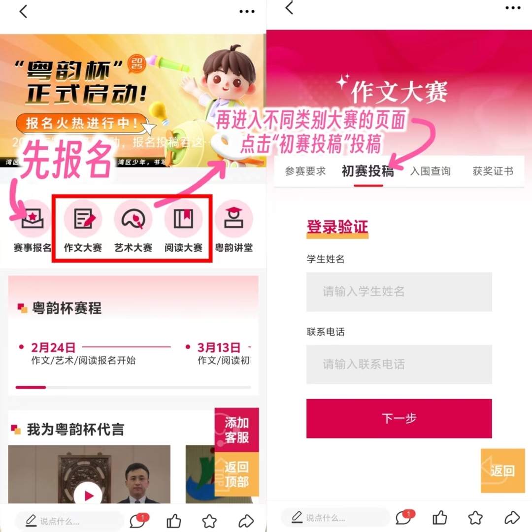 途径二:关注“广州日报”“广报求学”或“广报文化”微信公众号,发送“粤韵杯”获取参赛入口。