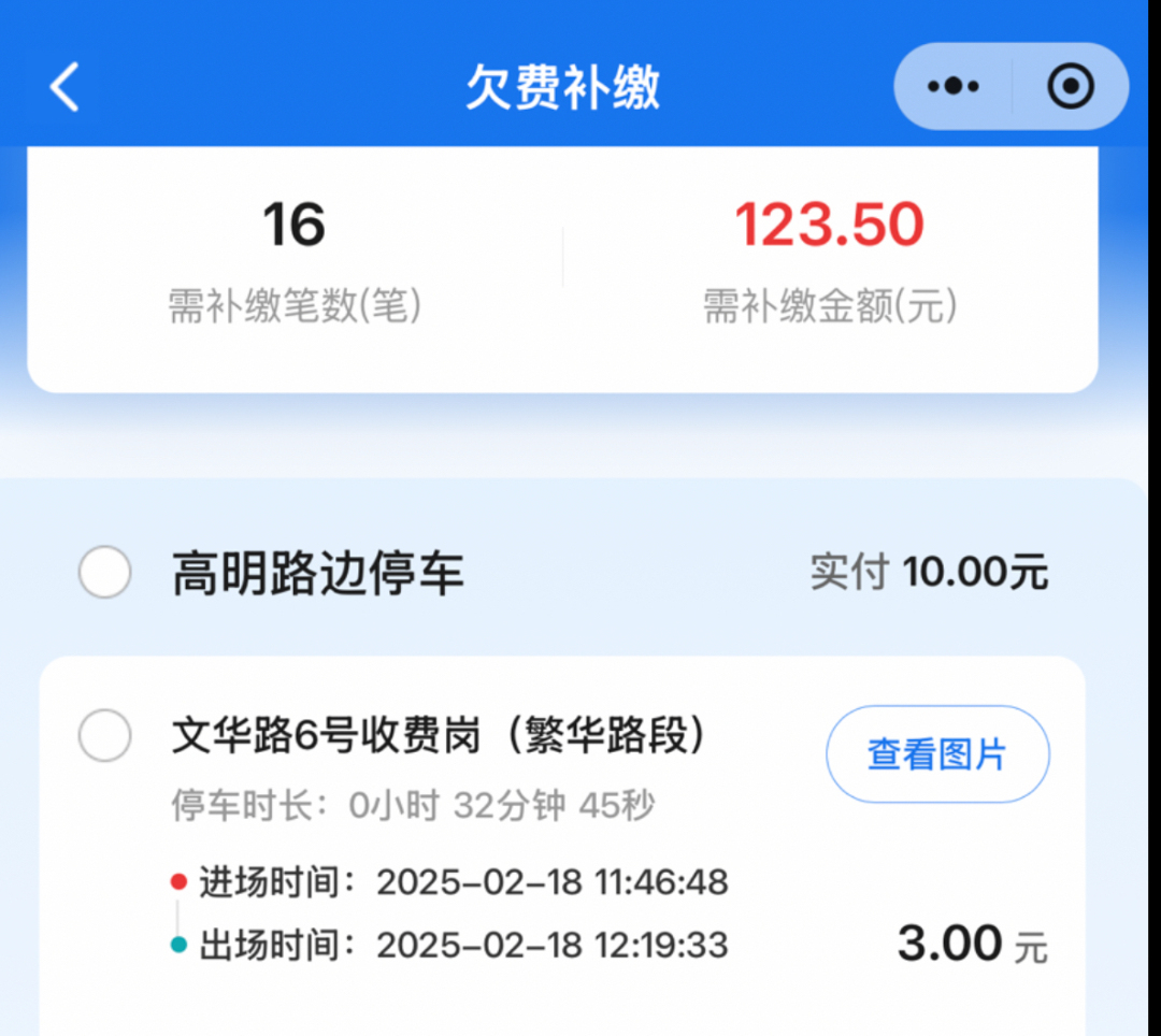 路边停车费是否和商圈、公共停车场缴费进行了“捆绑”?广州日报记者跟随市民在禅城、顺德两个停车场进行了体验。在禅城顺联国际地下停车场,记者见到市民在扫描商家停车费减免的二维码后,确实跳转到了一个系统页面,上面显示有路边停车位的历史欠费记录,范围覆盖高明、禅城、顺德等区域,总数16笔欠费费用为123.5元。