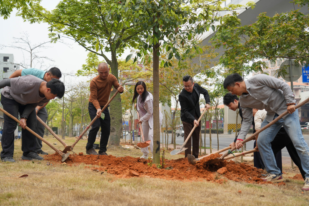 当天,在广州地铁十四号线竹料站北侧绿地活动现场,白云区城管局党员干部挥锹铲土、扶苗浇水,每一道工序都做得认真细致。据了解,此次植树活动共种植苗木410株,都是在白云区认种认养平台上认种后,再进行线下种植。活动现场还设置了白云区认种认养平台宣传展板,工作人员热情向市民群众介绍平台的使用方法,鼓励更多人通过这一平台认种认养树木。