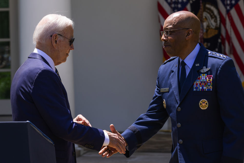2023年5月25日,时任美国总统拜登在华盛顿白宫提名空军上将查尔斯·布朗为下一任美军参谋长联席会议主席。新华社发(亚伦 摄)