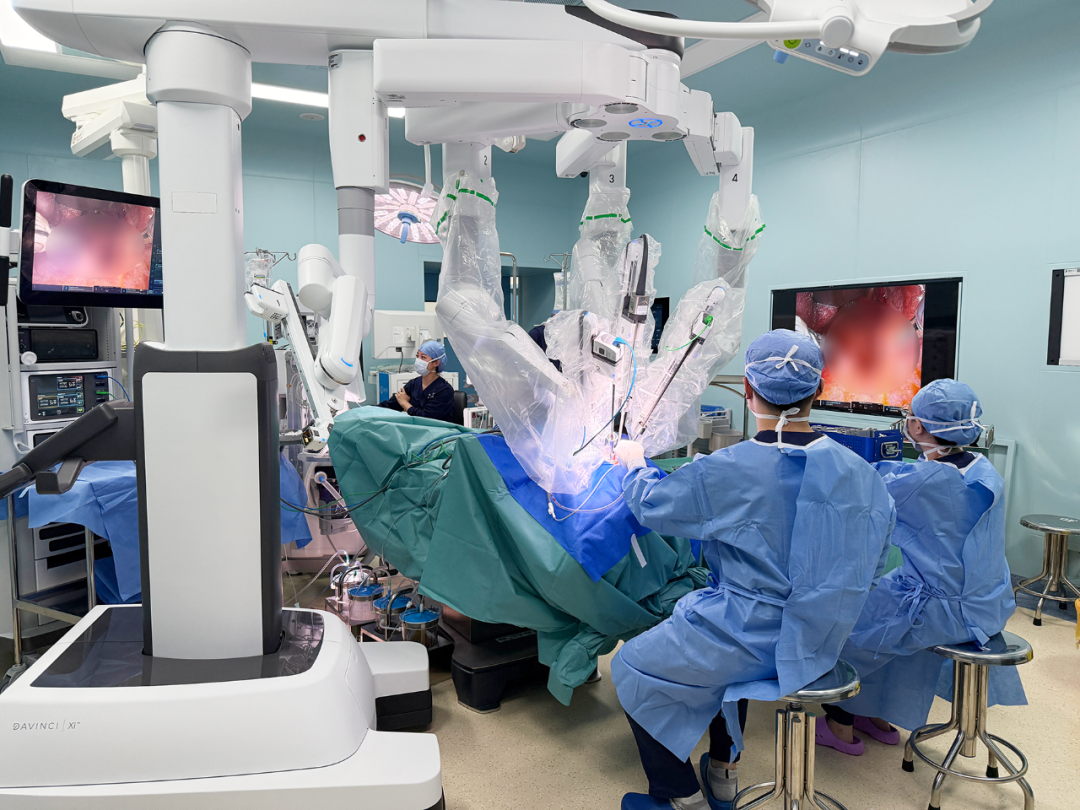 黄晓明教授和梁发雅教授在花都院区开展机器人手术
