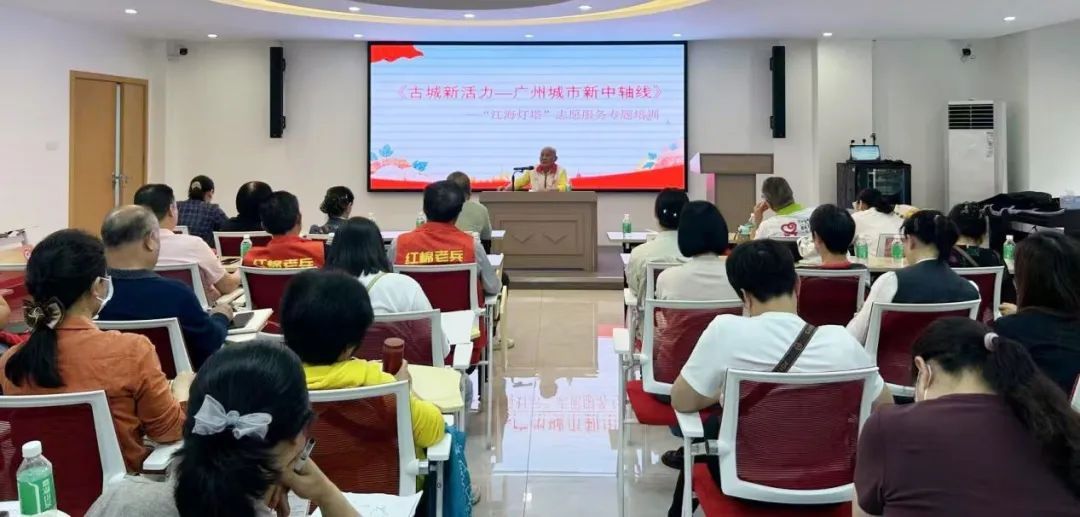 培训邀请“广州好人”“中国社区志愿之星”“广东省五星级志愿者”“广州志愿服务优秀义务讲解员”卜为民老师围绕志愿者礼仪规范、志愿服务场景应用等内容,结合广州新中轴线的位置和范围、规划目标及建设意义等,为全体学员带来专题培训。