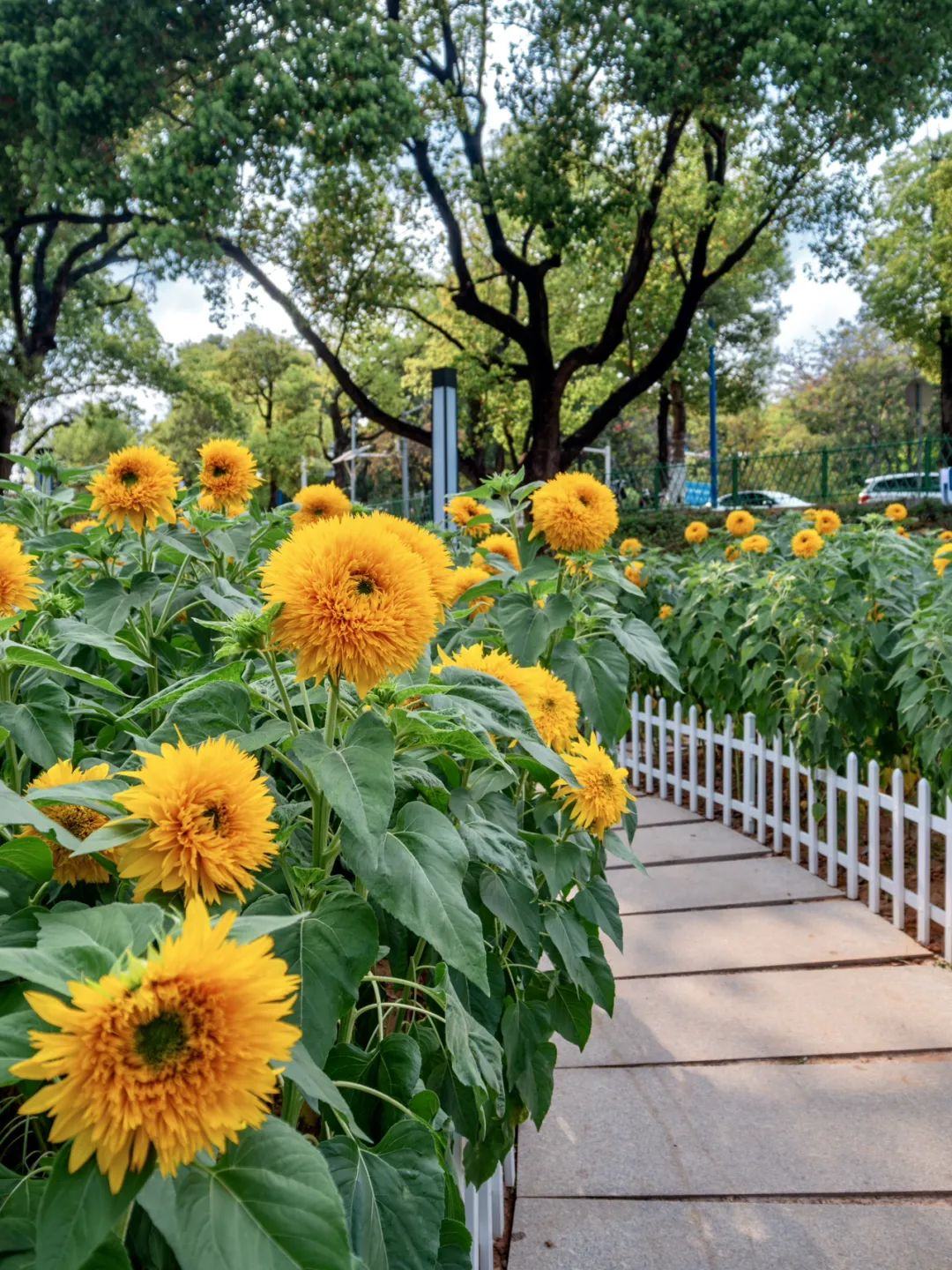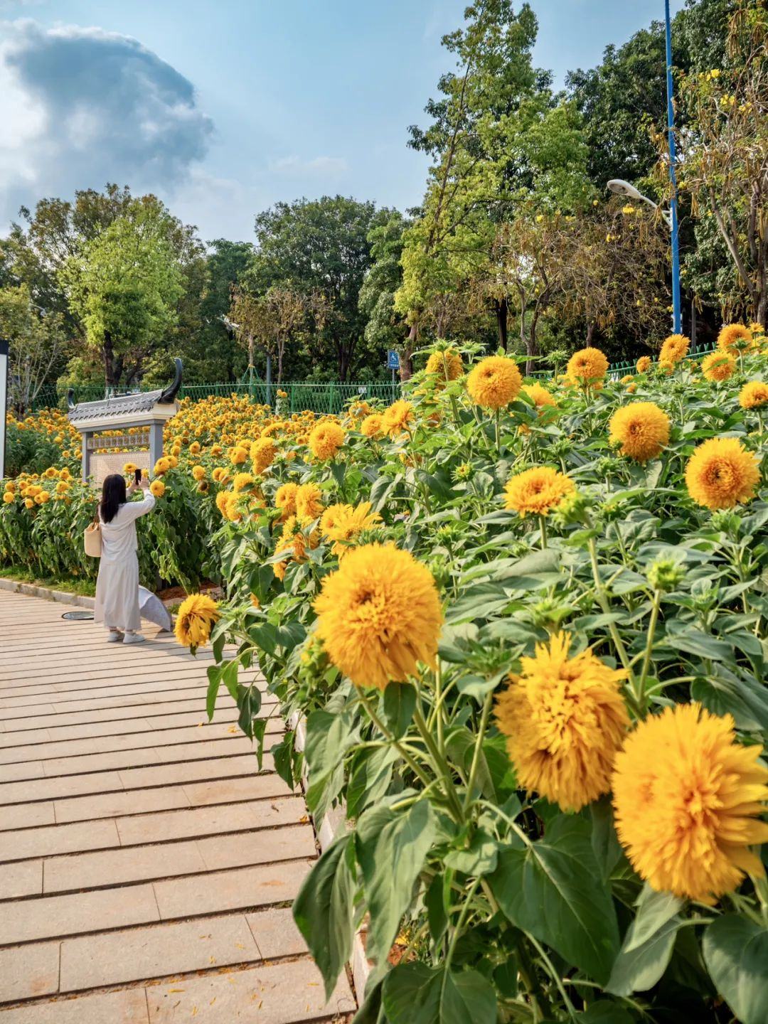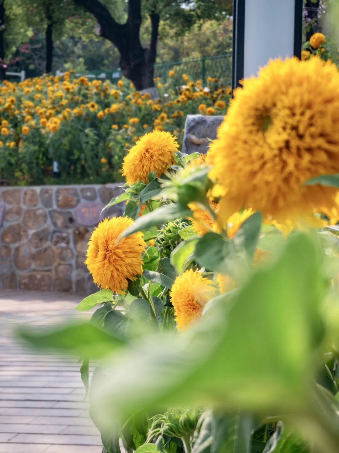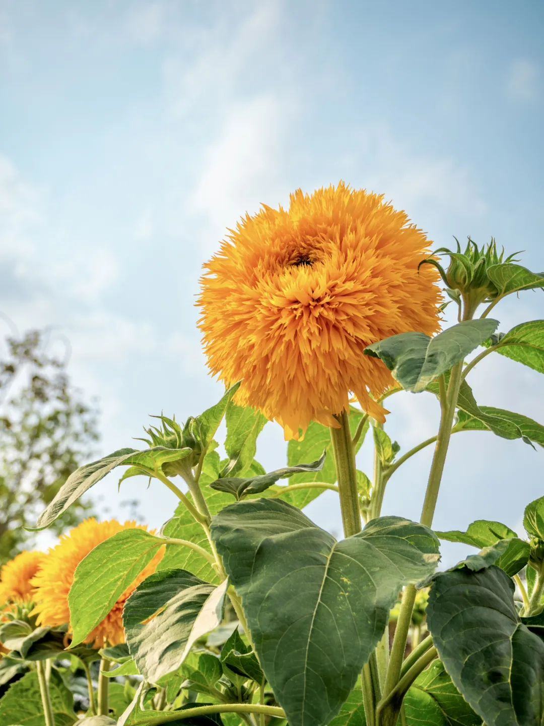这片向日葵“花海”的特别之处在于花朵像极了金黄色的毛绒玩具,花瓣蓬松饱满,毛茸茸的,憨态可掬,非常“萌”。