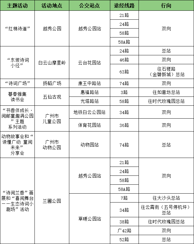 广州市儿童公园开展的“书香伴成长·阅邮童趣满公园”主题系列活动,让孩子们在欢笑中感受阅读的魅力。广州市动物园的动物故事会和“读懂广动 童阅未来”分享会,让童书作家与动植物专家的智慧碰撞,激发孩子们对自然的热爱。兰圃公园的“诗阅兰香”画展和“喜阅舞台——生态诗词小剧场”活动,则让艺术与生态和谐共生,让阅读成为连接心灵与自然的桥梁。市民可乘坐一汽巴士一分公司的34路线在地铁白云公园站或36路线在体育花园站、74路线在动物园总站以及21、24、58、58A路线在越秀公园站或7、34、38、42、52路线在草暖公园站下车步行前往。