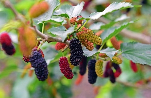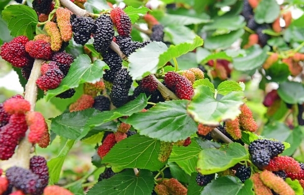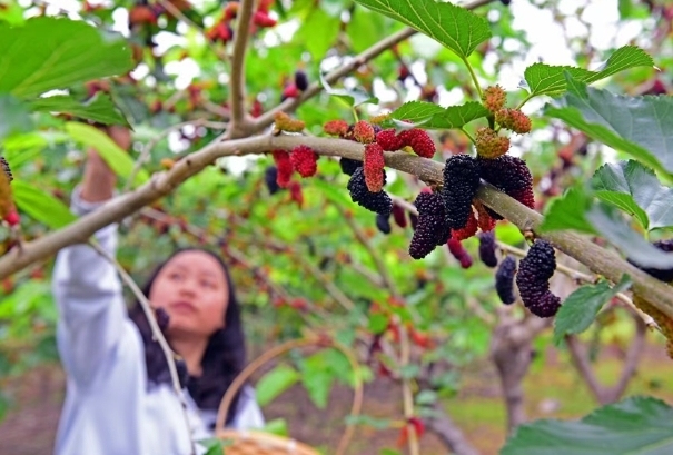 才赏百花艳,又迎桑果鲜。广州花都的春天,既饱眼福又饱口福。当下,广州市花都区农技推广服务驿站新品种推广展示园里的桑果进入成熟期,颜色不一形态各异的果实密布枝叶间,甜蜜饱满,呼“汁”欲出,十分诱人。这一丰收盛景,也是花都区农业科技成果的生动展现。