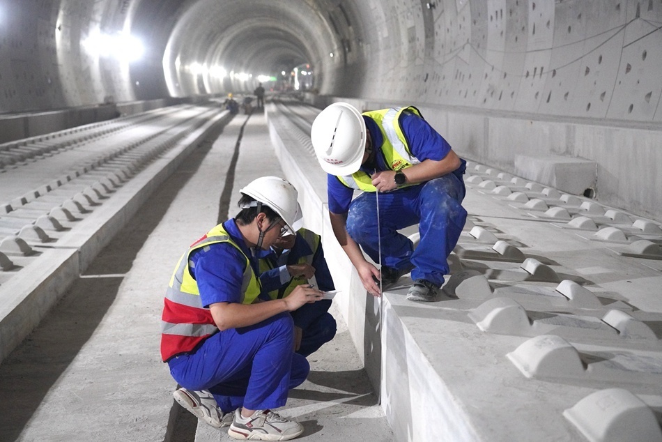 自进入无砟轨道施工前期准备阶段以来,项目通过周密部署、超前谋划,健全完善质量管理体系,明确各环节技术规程和操作规范,历经120天施工,实现隧道内单日平均施工作业160米、高峰时段施工作业240米,圆满完成施工任务。同时,项目部全面落实安全管理要求,定期开展隧道安全检查,重点排查隧道机械设备、用电、消防等,切实压实各方安全责任,为推进无砟轨道施工圆满完成奠定坚实基础。