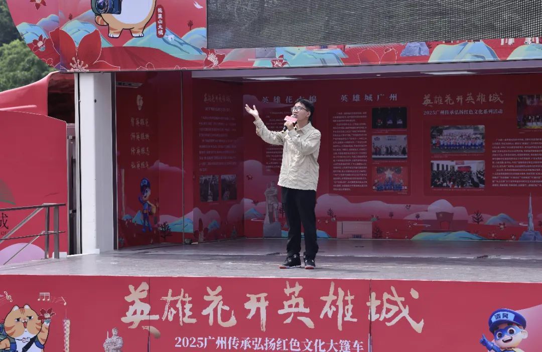 活动伊始,“英雄花开英雄城·2025广州传承弘扬红色文化大篷车”旗帜传递交接至海珠区。