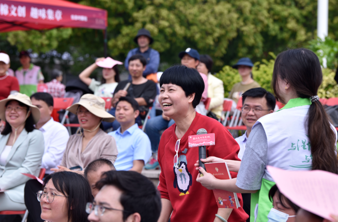 市民在海珠区青年志愿者协会志愿者的指引下,有序参加趣味集章互动。