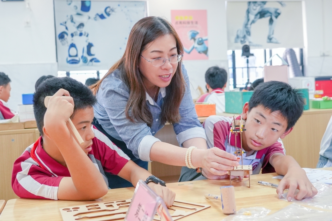 “‘六供给’的巧妙在于为科创教育注入了内生动力,是可再生的‘造血’而不是一次性的‘输血’。以‘供设备’‘供器材’为例,在学习阶段,学校师生可以用市电化教育馆供给的学具器材与设备开展学习,修炼内功。即使学具器材用完了,学校仍可使用被供给的激光切割机根据供给的学具设计图纸进行自主生产,也可改良图纸重构再造,还可根据孩子们的想法进行设计创新,构造和制作学校的作品特色序列。”市电化教育馆特级教师龙丽嫦介绍道,除了打造可循环的硬件供给外,软件供给同样被赋予了自我更新的能力。“供课程”的课程在团队研发之初就设计成可按需迭代改良、改构、增值,从而反哺、丰富课程本身,丰富模块化主题课程序列横向或纵向地衍生。在“六供给”举措的赋能下,各项目实施校开发了各具特色的校本科创课程。例如,白云区穗丰学校形成了红色文创的作品序列,南沙区东涌中学形成了花草宫灯的创作序列,番禺区沙湾中心小学用新技术衍生了数艺鱼灯的制作,白云区太和镇第一小学创造了板上刺绣的激光工艺与流程方法,白云区华新学校形成了校园叠雕的精美创作系列……