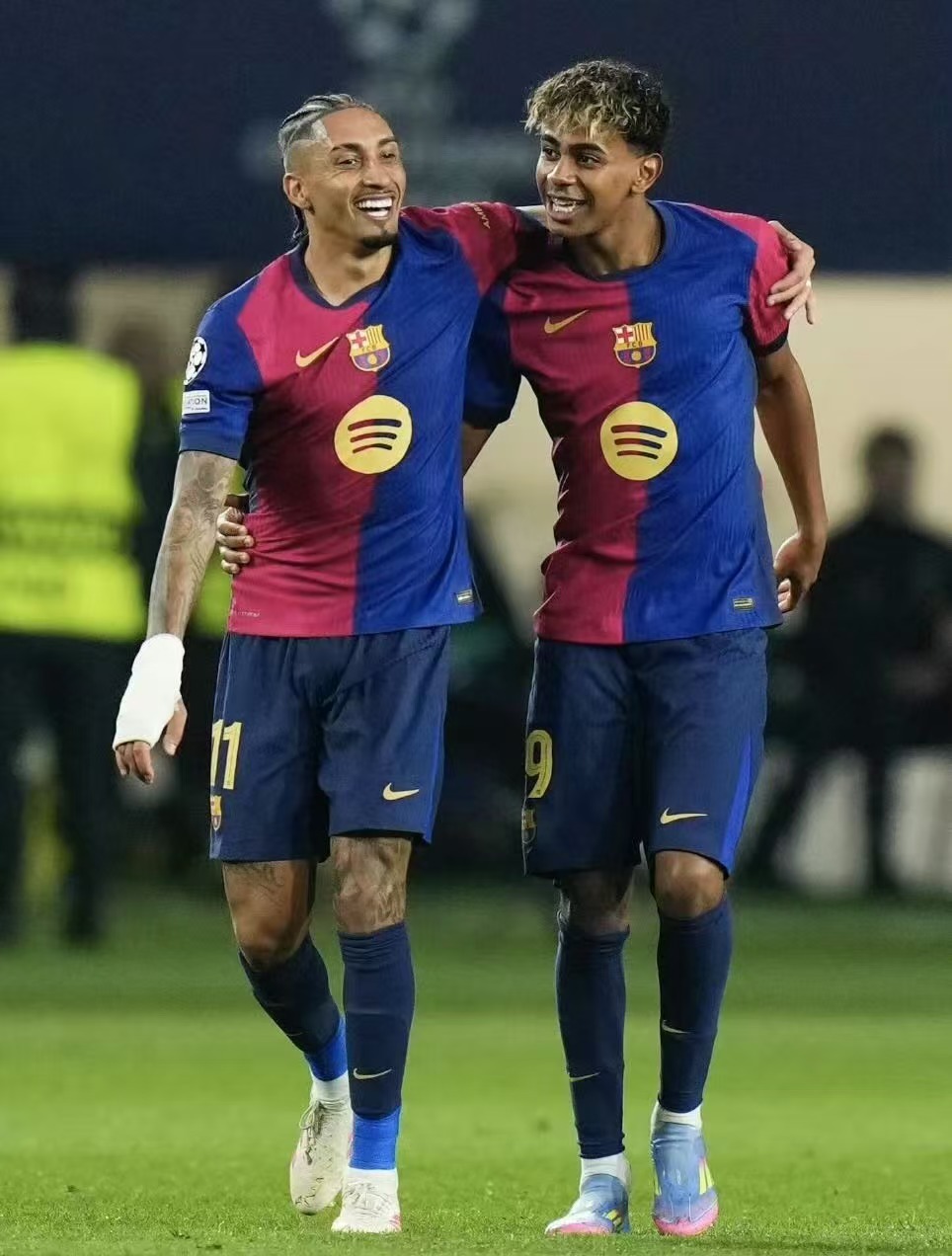 巴萨主场4比0大胜多特蒙德,莱万“梅开二度”,拉菲尼亚一射两传,亚马尔锦上添花,“前场三叉戟”均有斩获,本赛季已经取得82球、42助攻,火力强劲。新帅弗里克执掌巴萨的第一个赛季,目前球队在欧冠、西甲、国王杯三线均有望夺冠。