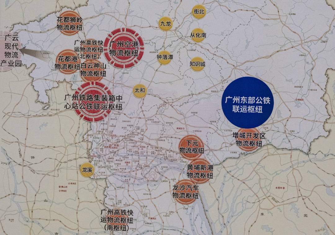 大会期间,151个国家物流枢纽建设运营主体单位、100个示范物流园区负责人将到广州东部公铁联运枢纽调研参观。它究竟有何魅力?谈起这个话题,必须要翻开地图来看。
