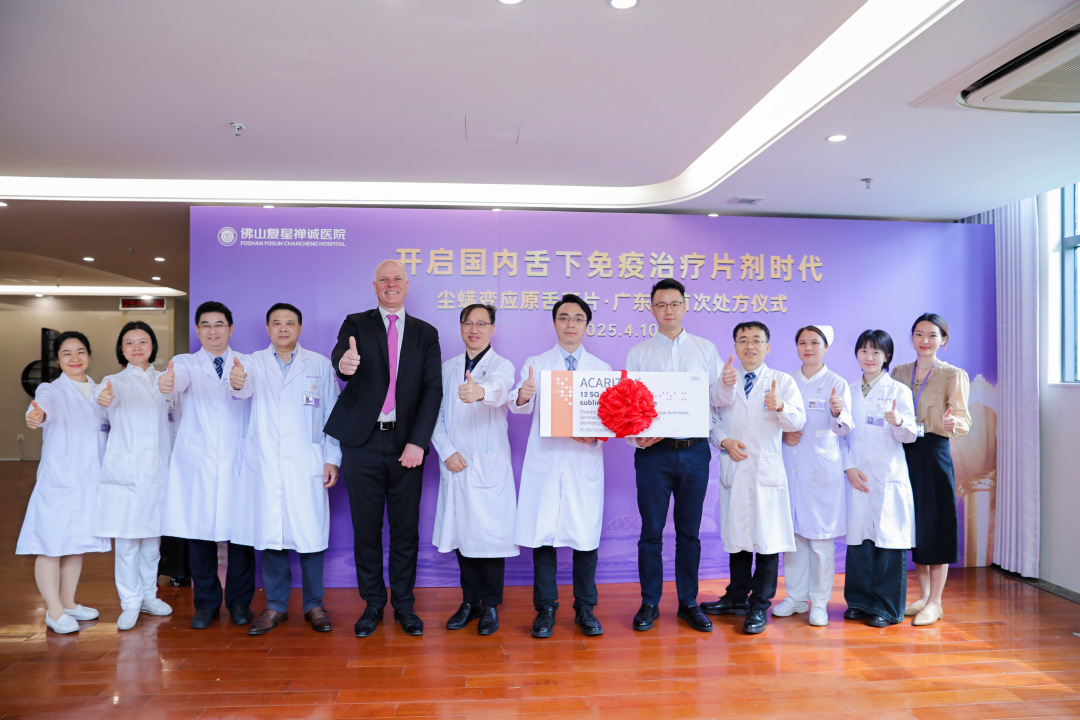 4月10日,通过“港澳药械通”政策引进治疗尘螨过敏性鼻炎的新药尘螨变应原舌下片落地仪式在佛山复星禅诚医院(简称“佛山禅医”)举办,并于4月8日开出广东省首张处方。作为全球首款获批的尘螨变应原舌下片,每日1片舌下含服,无需注射,为广大过敏性鼻炎患者提供了过敏原特异性免疫治疗的新选择。