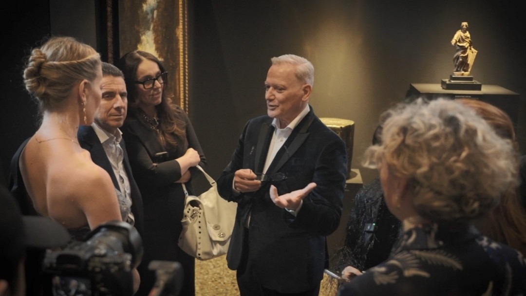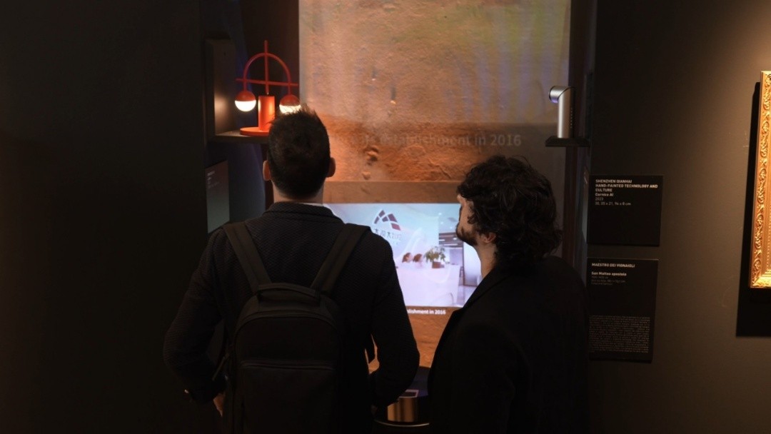 在现场,百件东方智造产品吸引观众驻足观看。文艺复兴时期的艺术品与来自深圳的大漠大V4集群表演无人机、AI眼镜——LOHO&闪极拍拍镜A1、K5智能微型投影仪、光子透明电视、永丰源“紫韵天成”系列瓷器等科技、时尚、文化产品的并置,让观众在参观过程中感受到东方与西方、传统与未来的碰撞。策展人贾科莫・桑图奇表示,“因为在时尚品牌亚洲市场发展的经历,我与亚洲感情深厚。展览以东西方火神普罗米修斯和祝融的故事为蓝本,希望来宾能通过情感,感受思想、知识的交融,借相互理解共享进步未来。”