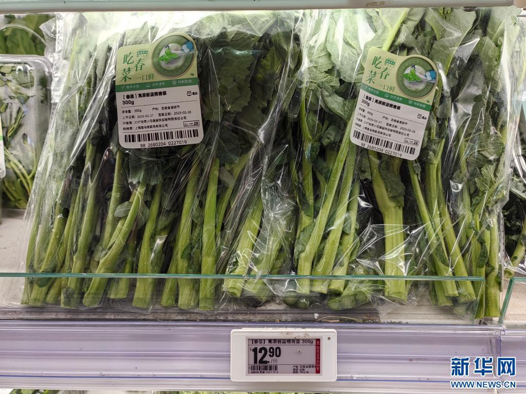 昆明市一家生鲜超市货架上的板蓝根青菜。图源:新华网