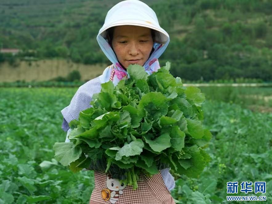 农户正在采摘板蓝根青菜。图源:新华网