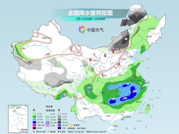 随着较强冷空气登场,今起三天,内蒙古东部和东北地区等地将遭遇强雨雪,最强降雪时段将出现在11日夜间至12日夜间。同时,今明两天南方地区或现今年来最强风雹天气,湖北、湖南、安徽、江西、浙江、福建、广西等地部分地区今天需防范强降雨。