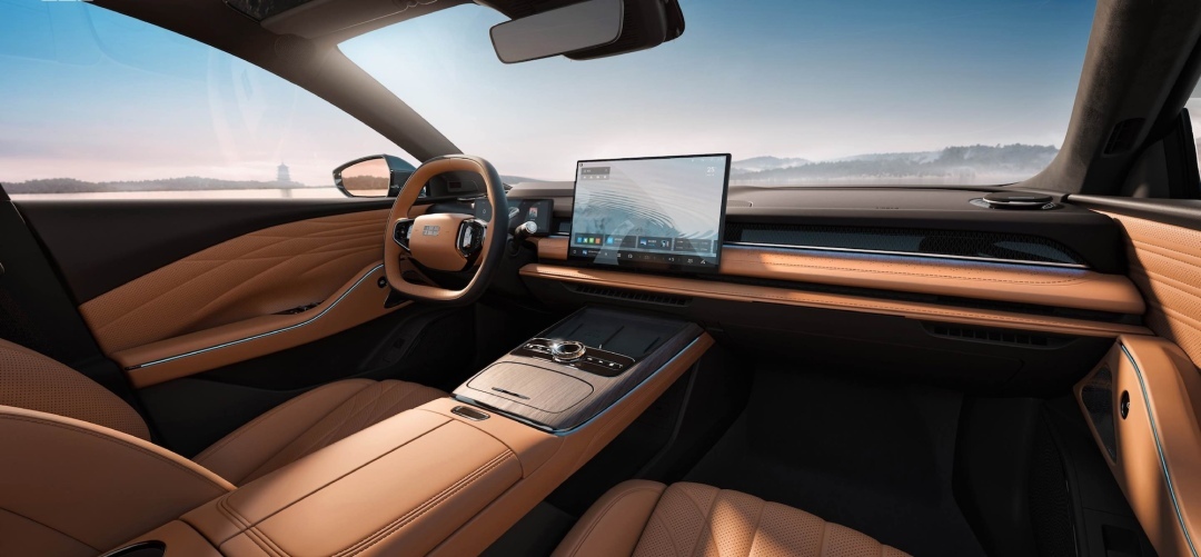 星耀8以“中式豪华”设计,5米车长搭配“涟漪美学”设计语言,从“飞檐虎视”大灯到“旭日东升”尾灯,将中国传统文化元素与无框车窗、隐藏式门把手等现代工艺结合,打造“5米最美混动”视觉标杆。新车座舱同样采用中国传统文化元素设计,车内85%软包覆盖、仿麂皮顶棚与檀木棕、曜石灰两款内饰,配合“三潭印月”等细节雕琢,展现东方雅致意境。