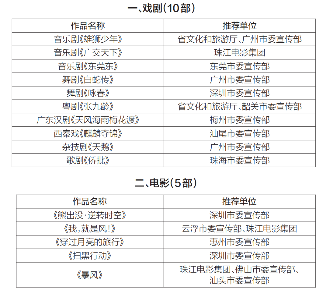 全省共60部作品入选,涵盖图书、戏剧、电视剧、广播剧、歌曲、电影六大门类。在12部图书类获奖作品中,广州作家张欣所著《如风似璧》与陈崇正新作《归潮》获奖。