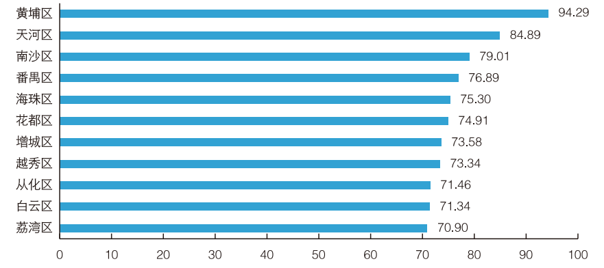 图6 2023年广州各区创新指数综合得分情况