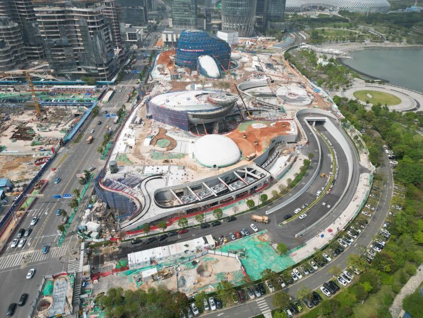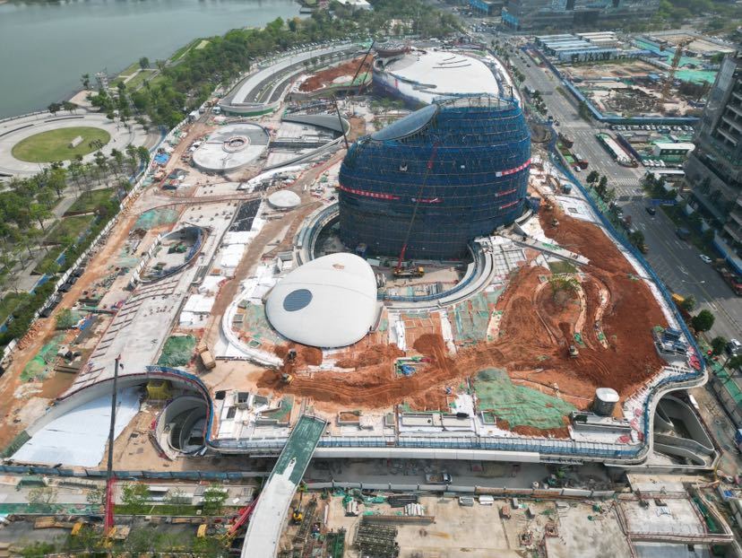 据承建方中建科工深圳湾文化广场项目部行政总监李玥介绍,采用如此大体量的多曲面薄壳形建筑,在国内尚属首例。项目面临异形结构控制、清水混凝土施工、钢结构施工等诸多难点,多项施工难度堪称国内之最。