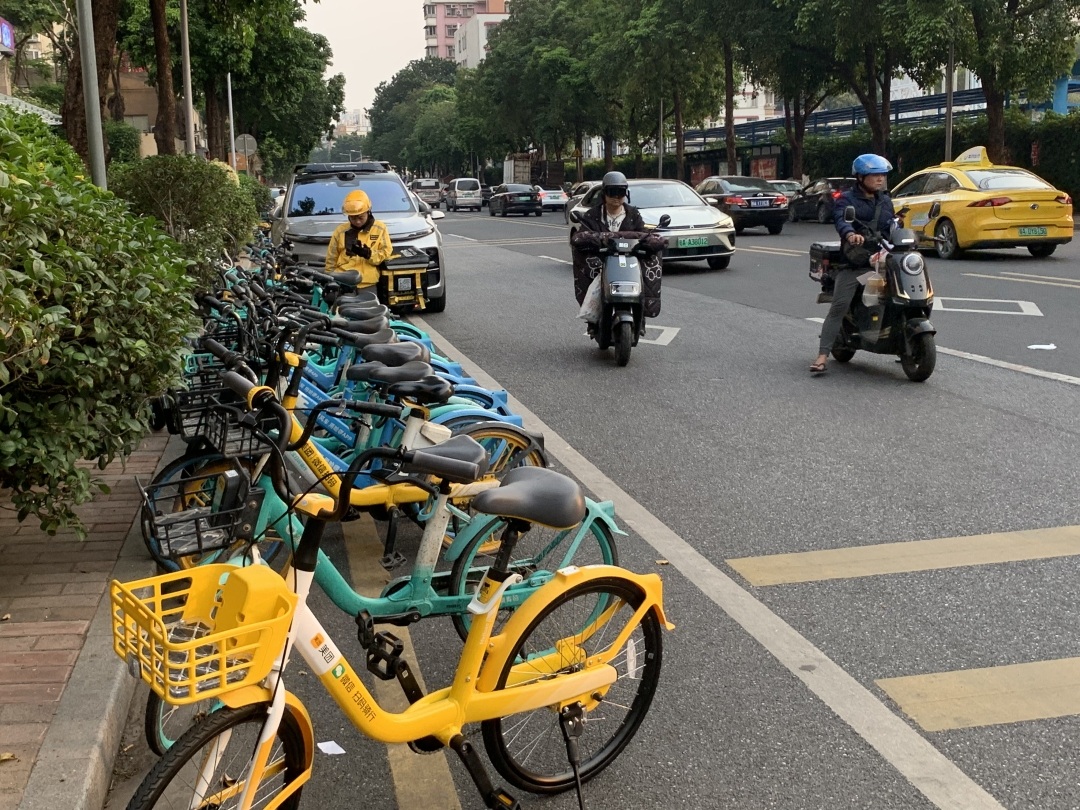 赤岗北路还有一个问题引起市民不满,就是共享自行车随意停放在非机动车道上,令非机动车无路可走,非机动车只能挤入机动车道,影响交通,也相当危险。