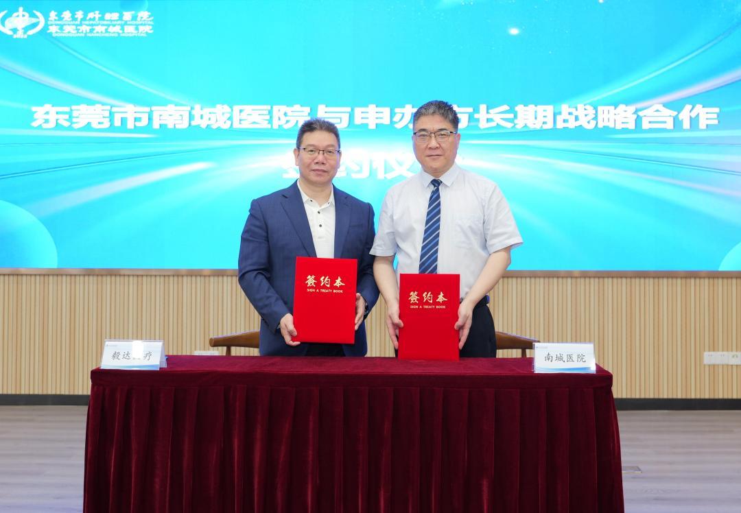 在2024年底东莞市卫生健康局和市科技局、市工信局等部门举办的“东莞市生物医药与高端医疗器械政产医融合对接会”上,南城医院与广东毅达医疗科技股份有限公司、广东康元健医疗科技有限公司等企业结缘,达成合作意向。