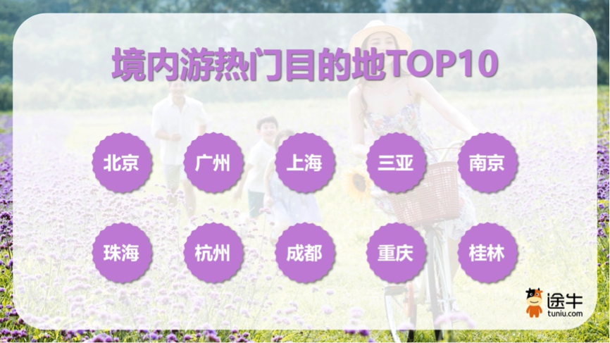 出境游方面,跟团游和自由行是途牛用户的热门选择,截至目前预订人次占比分别为60%和29%。日本、马尔代夫、印度尼西亚、泰国、马来西亚、新加坡、韩国、斯里兰卡、俄罗斯、新西兰等目的地也保持了较高热度。