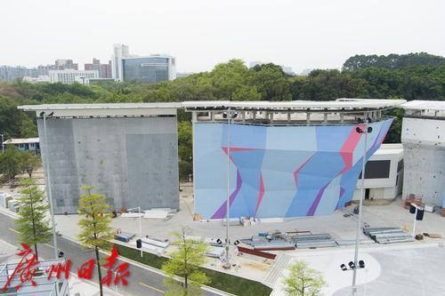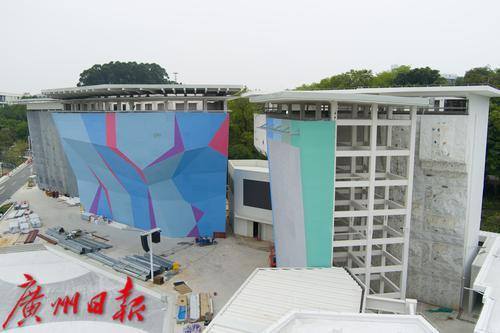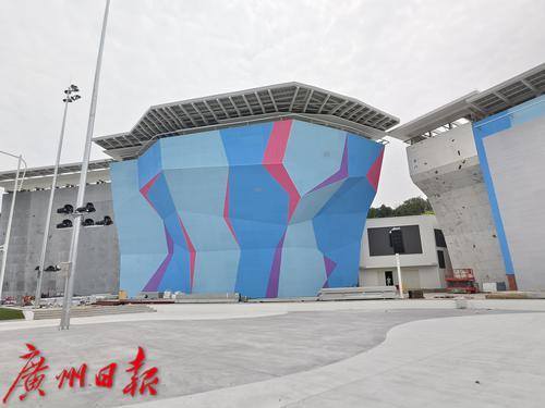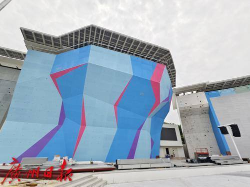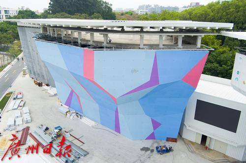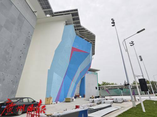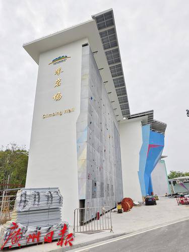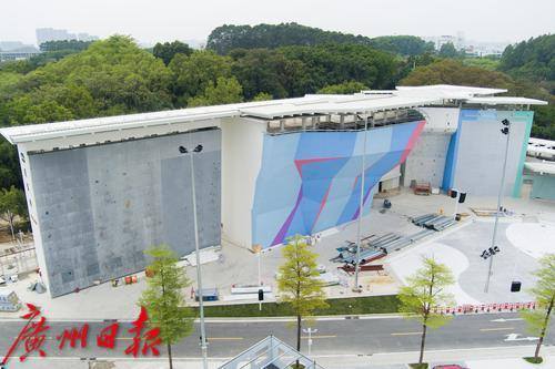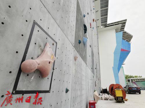 改造接近尾声的广州大学城体育中心攀岩场馆。