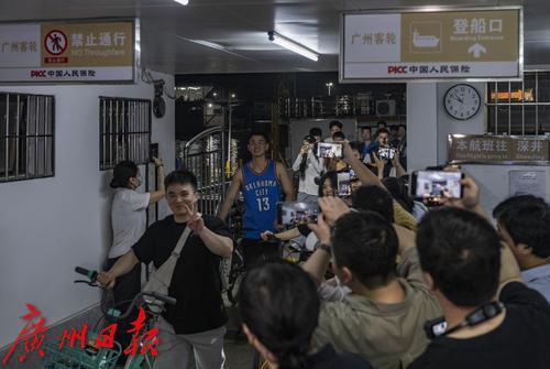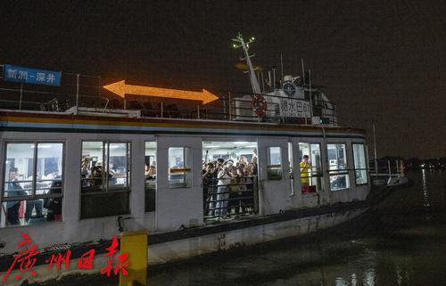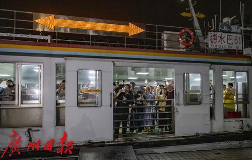 晚上9点55分,从深井驶来的最后一趟船抵达新洲,乘客们受到像明星一般的欢迎。