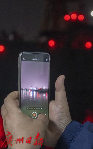 一趟深夜水巴从新洲开至深井,有街坊拍下热闹的登岸场景。