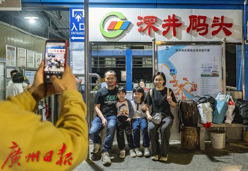 家住新洲的李女士因为外婆家在深井,过去30多年来每周都会搭乘深井-新洲之间的渡轮,当晚她特意带上先生和孩子前来作“告别之旅”。