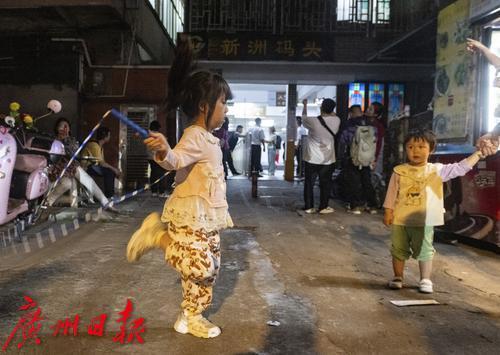 晚上9点半,一位候船的小朋友在新洲码头外跳起了绳。