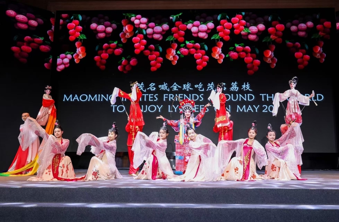 活动现场,嘉宾们还欣赏到化州具有悠久历史的传统舞蹈、国家级非物质文化遗产《跳花棚》。茂名多家名优企业也来到现场,带来了多款名优特色产品现场试吃、展示、互动,沉浸式体验茂名民俗风情。