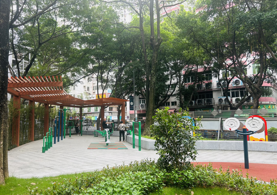 补齐和优化精致街区构造要素,天河区基于印发的城市品质提升指引,以市民生活为中心,增加公共空间城市家具种类,新增口袋公园等空间,完善照明、景观等设施,增设无障碍设施等。