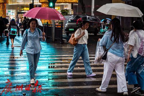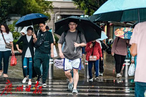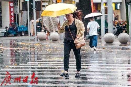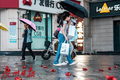 4月12日下午,受自北向南的大风和强雷雨团影响,广州遭遇强对流天气,多区迎来大风大雨。在越秀区,雨团在下午2时许开始影响,天空迅速转暗,狂风大作,路边树木被强风吹得剧烈摇晃,行人在雨中撑伞艰难前行。傍晚,风势雨势减弱,据天气预报显示,13日起,广州天气将有所好转。