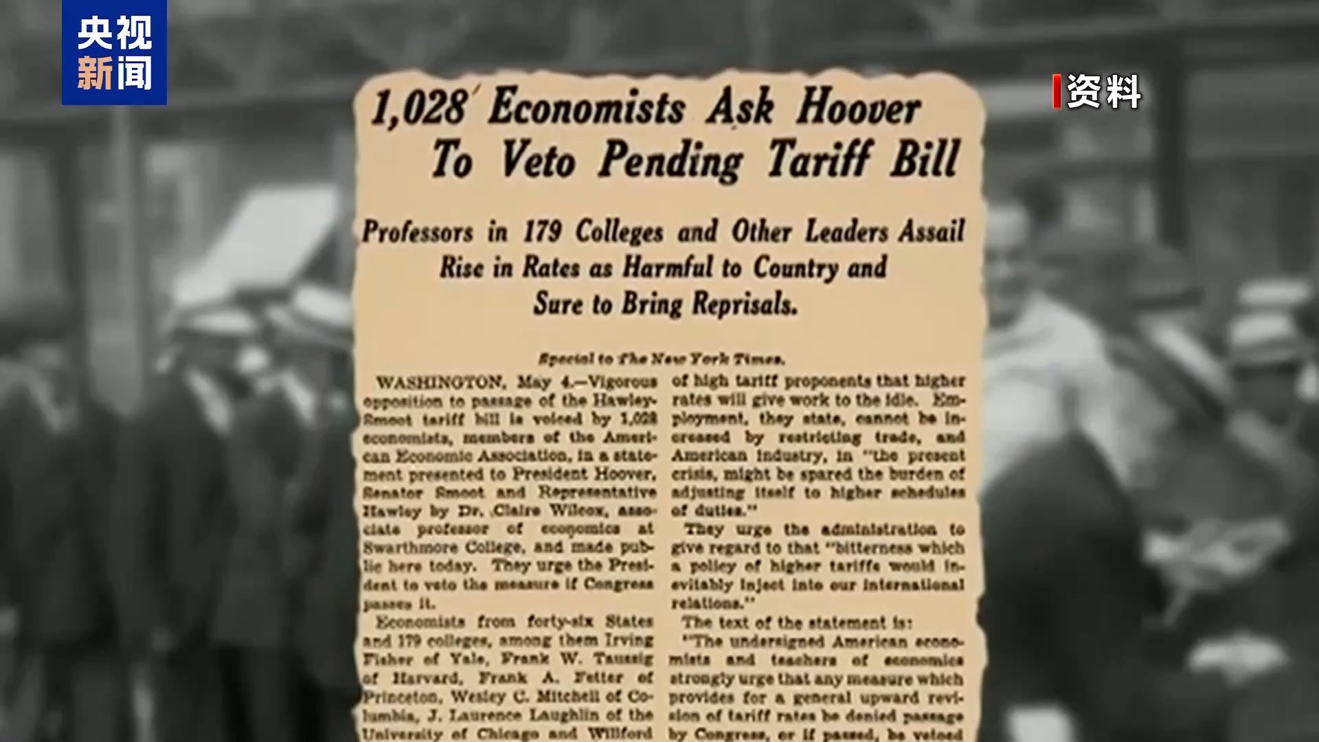 1930年6月,正值美国经济大萧条,时任总统胡佛不顾1000多名经济学家联名反对,签署《斯穆特-霍利关税法》,对2万多种进口商品加征高额关税。